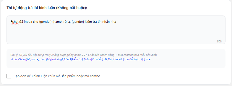 - Gửi tin nhắn vào inbox khi khách bình luận