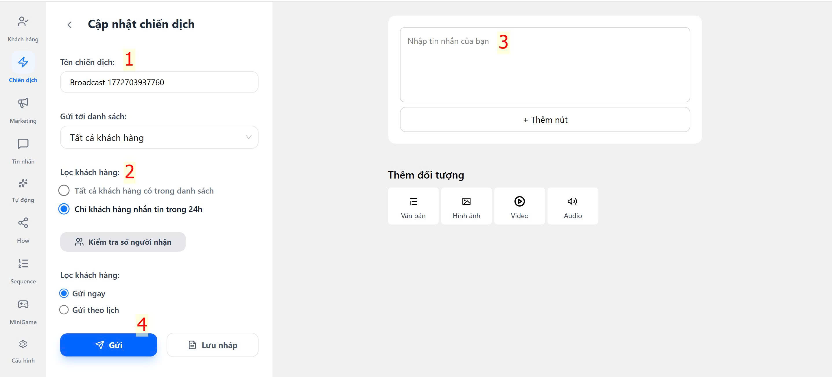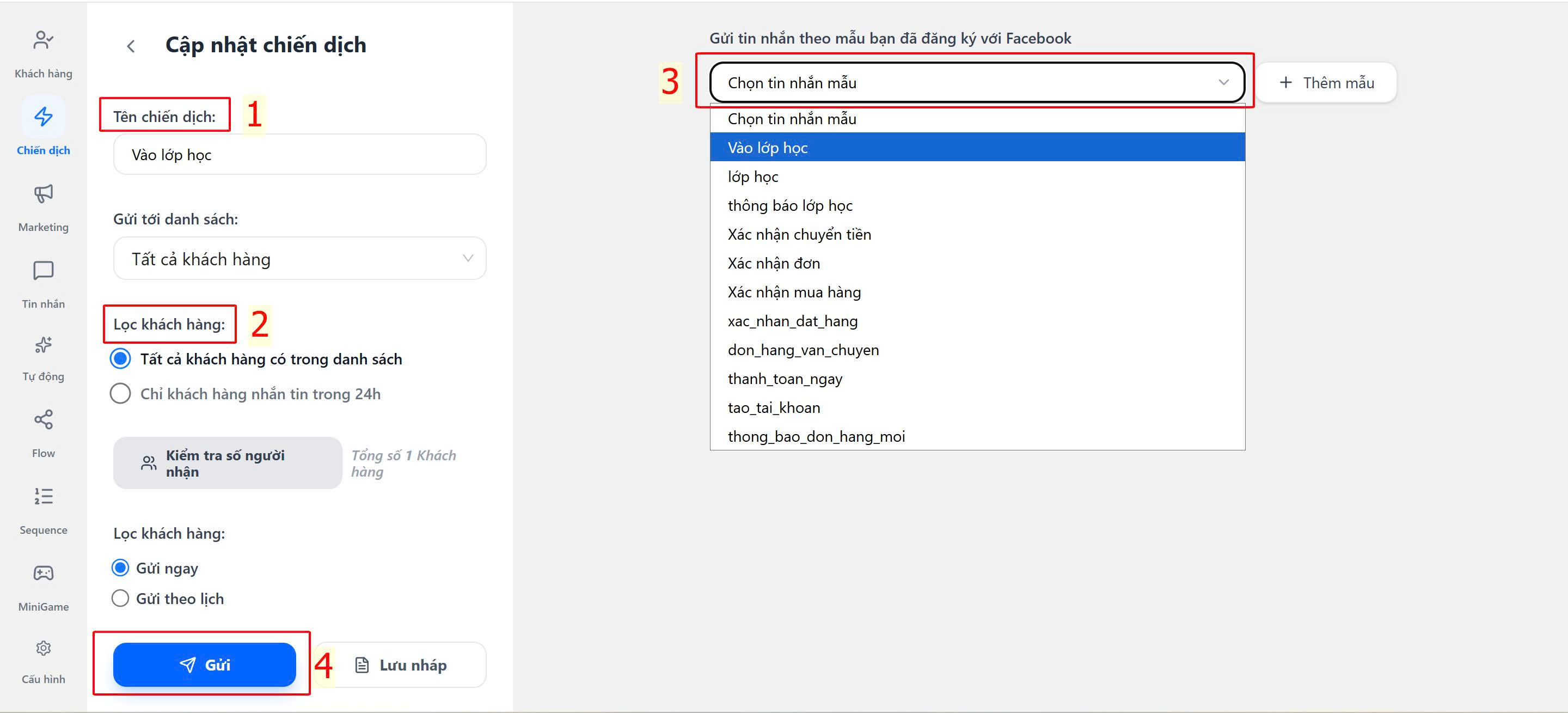Bước 4: Gửi chiến dịch