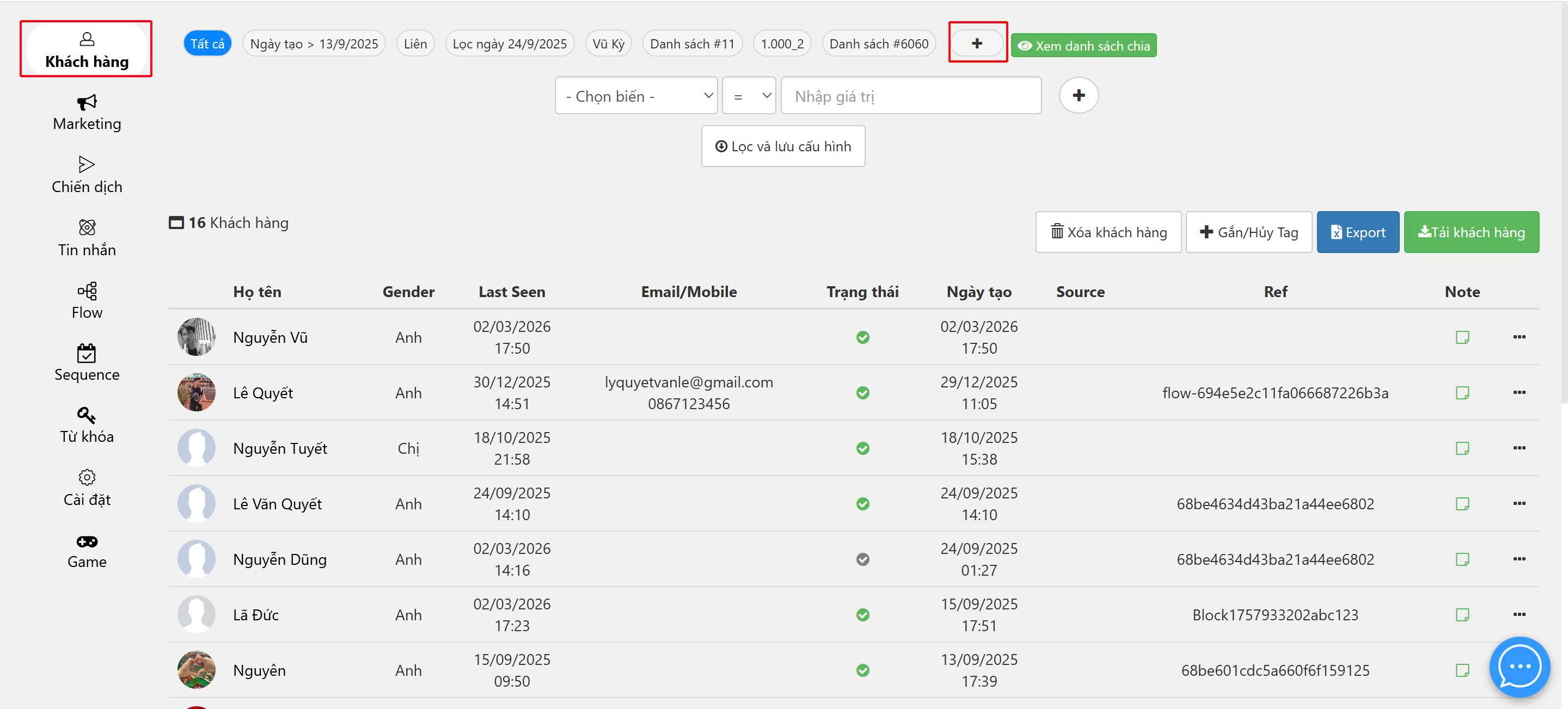 Bước 1: Tạo danh sách những khách hàng muốn gửi chiến dịch