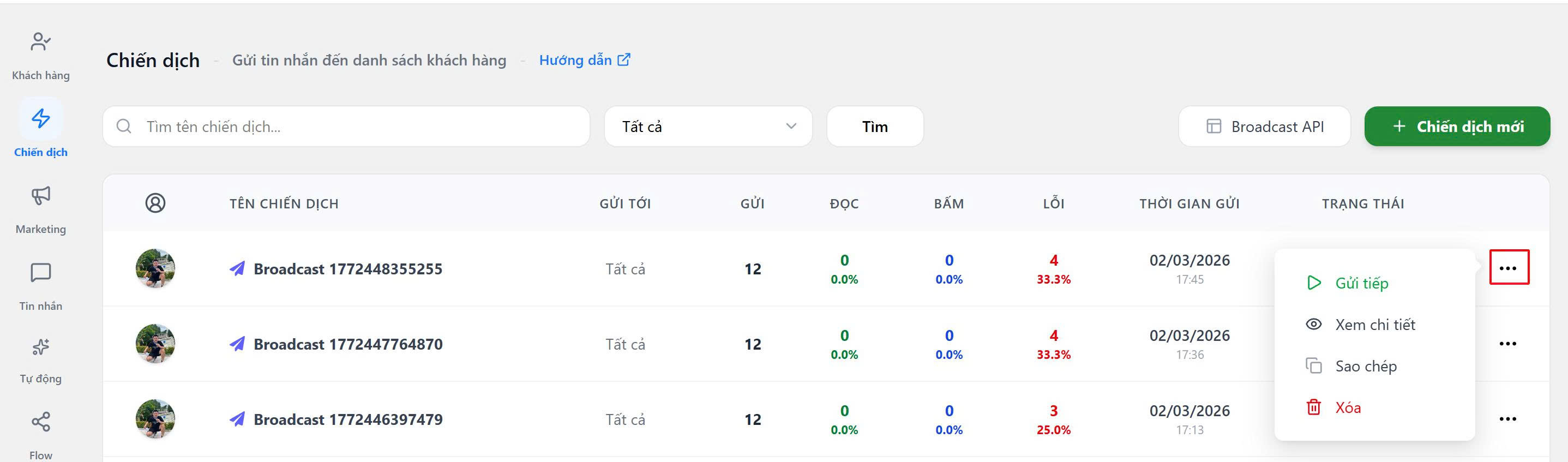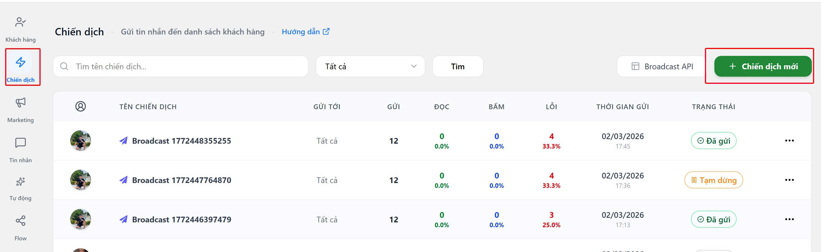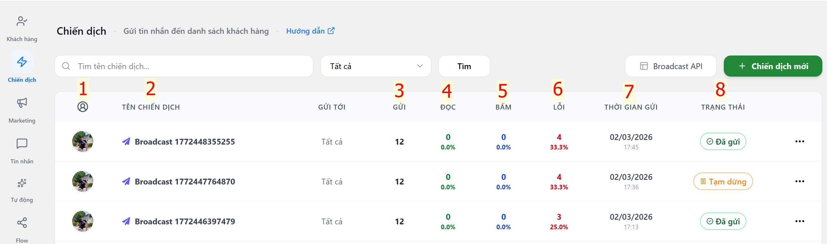 (1) Avatar tài khoản người tạo và gửi chiến dịch