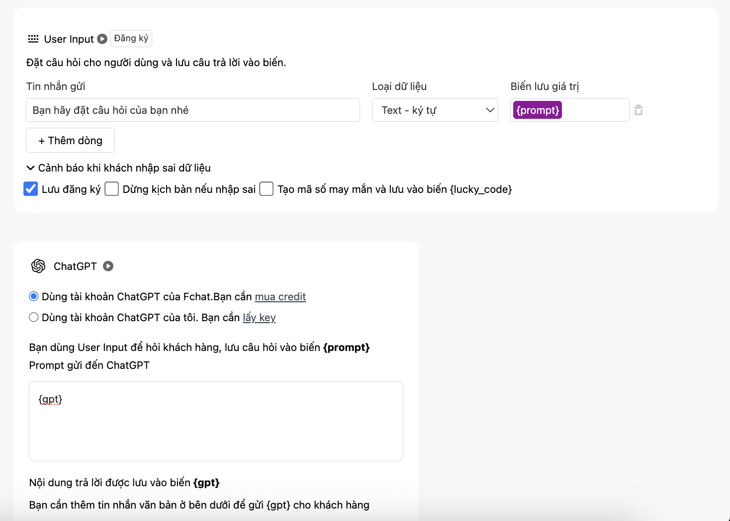 Tích hợp ChatGPT vào kịch bản chatbot Fchat