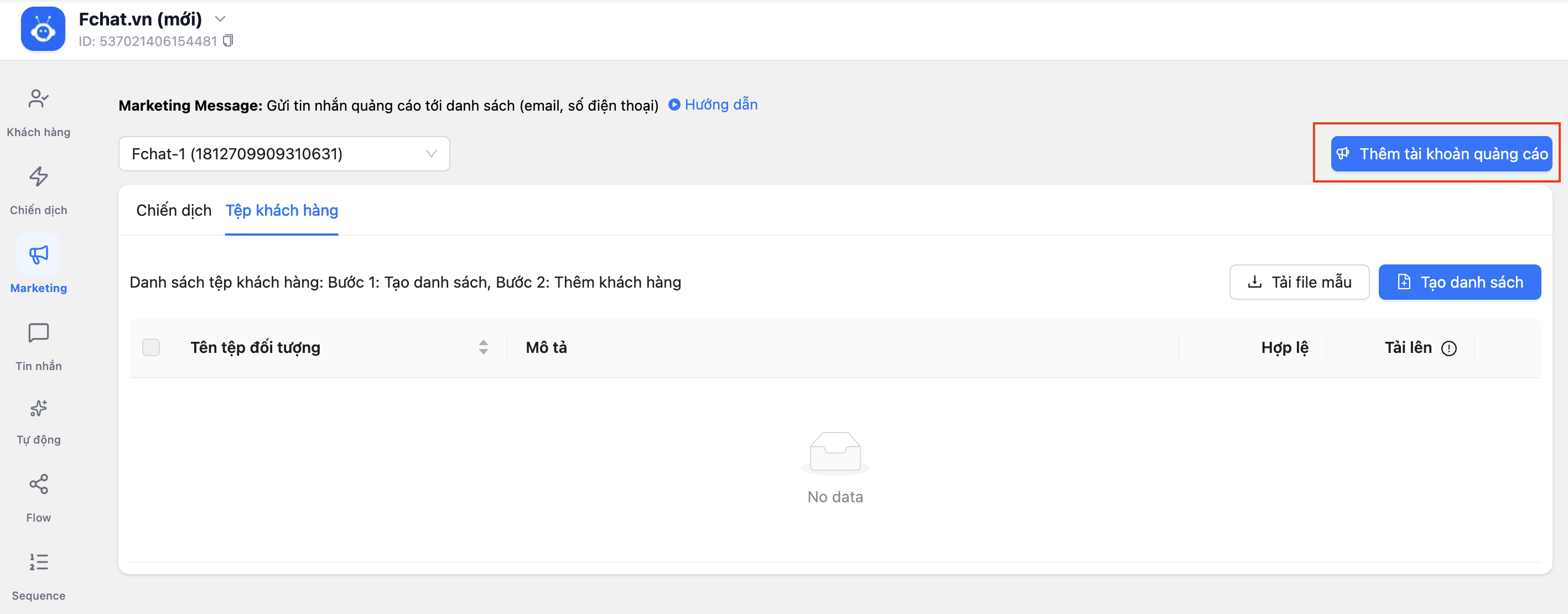 2. Tạo chiến dich, gửi tin nhắn Marketing cho danh sách khách hàng đã click quảng cáo