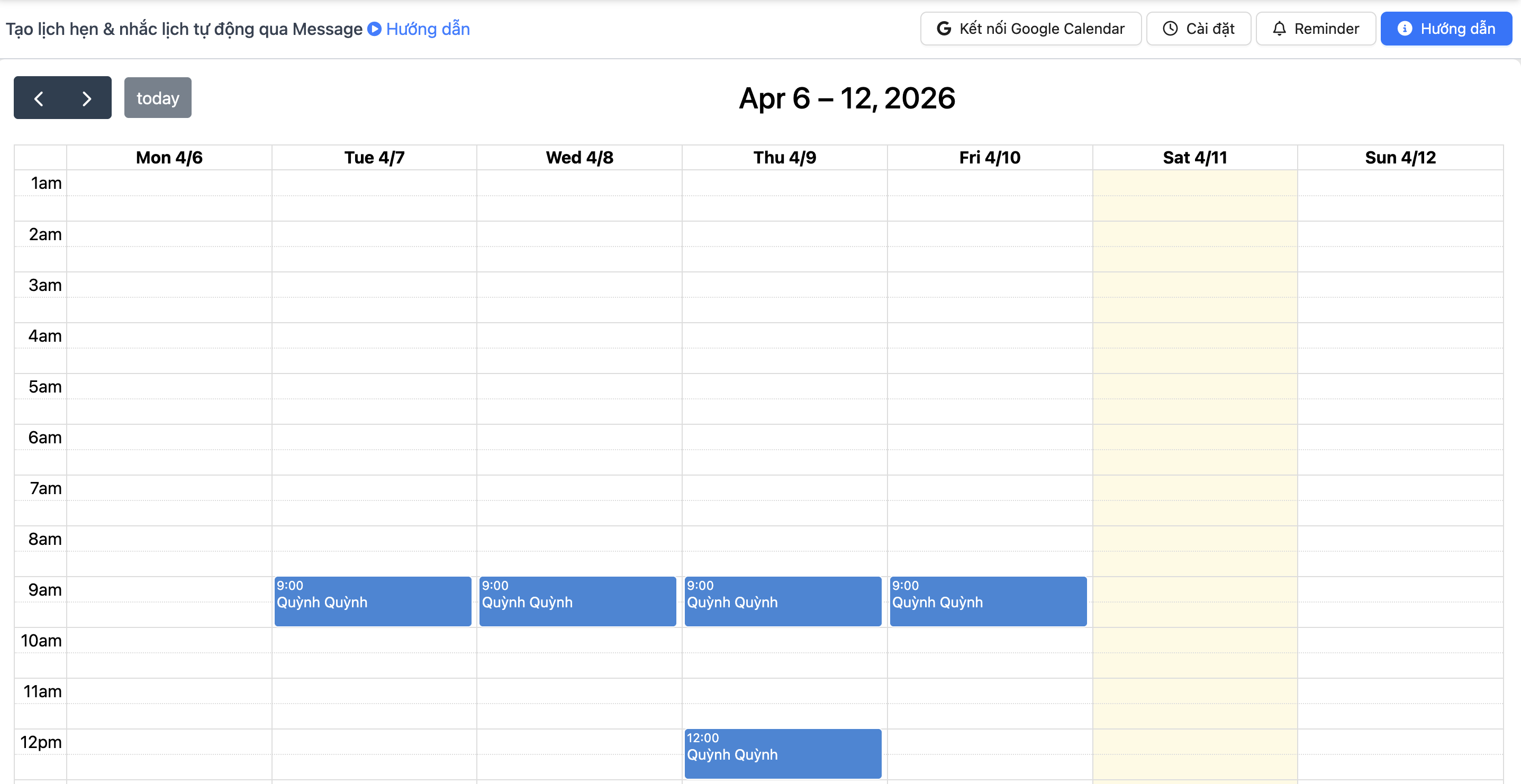 Tạo lịch hẹn & nhắc lịch hẹn tự động