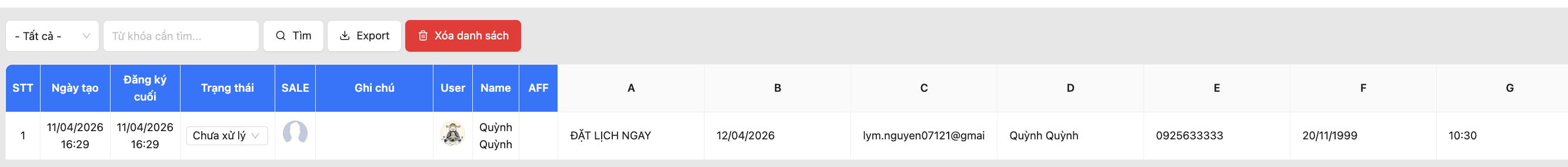 Khách hàng đăng ký đặt lịch, thông tin đặt lịch của khách sẽ được lưu lại tại mục đăng ký của đối tượng và mục Lịch hẹn