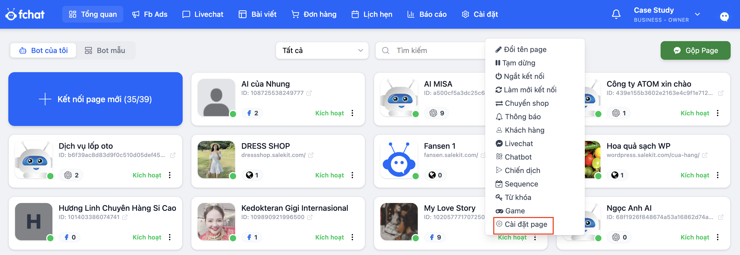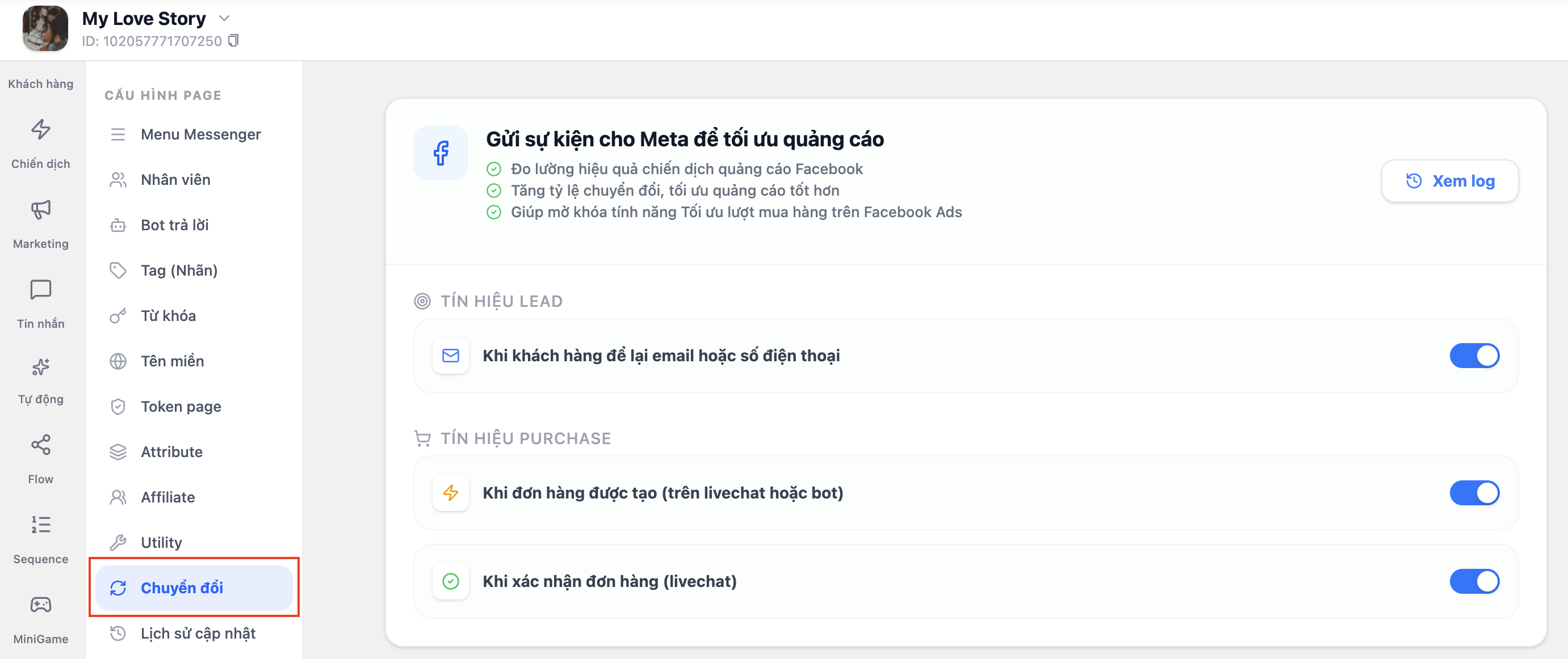 Bước 1: Bạn truy cập mục Cài đặt page -> Chọn Chuyển đổi