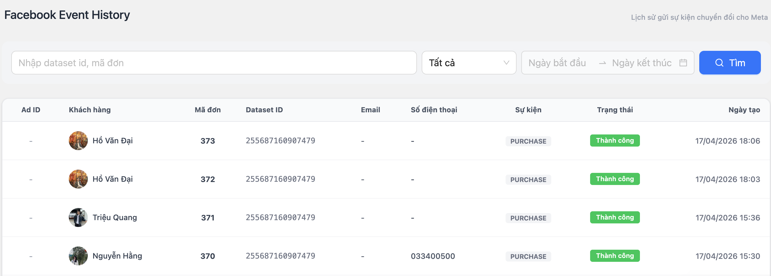 Thống kê, đồng bộ Lead và Đơn hàng với Meta