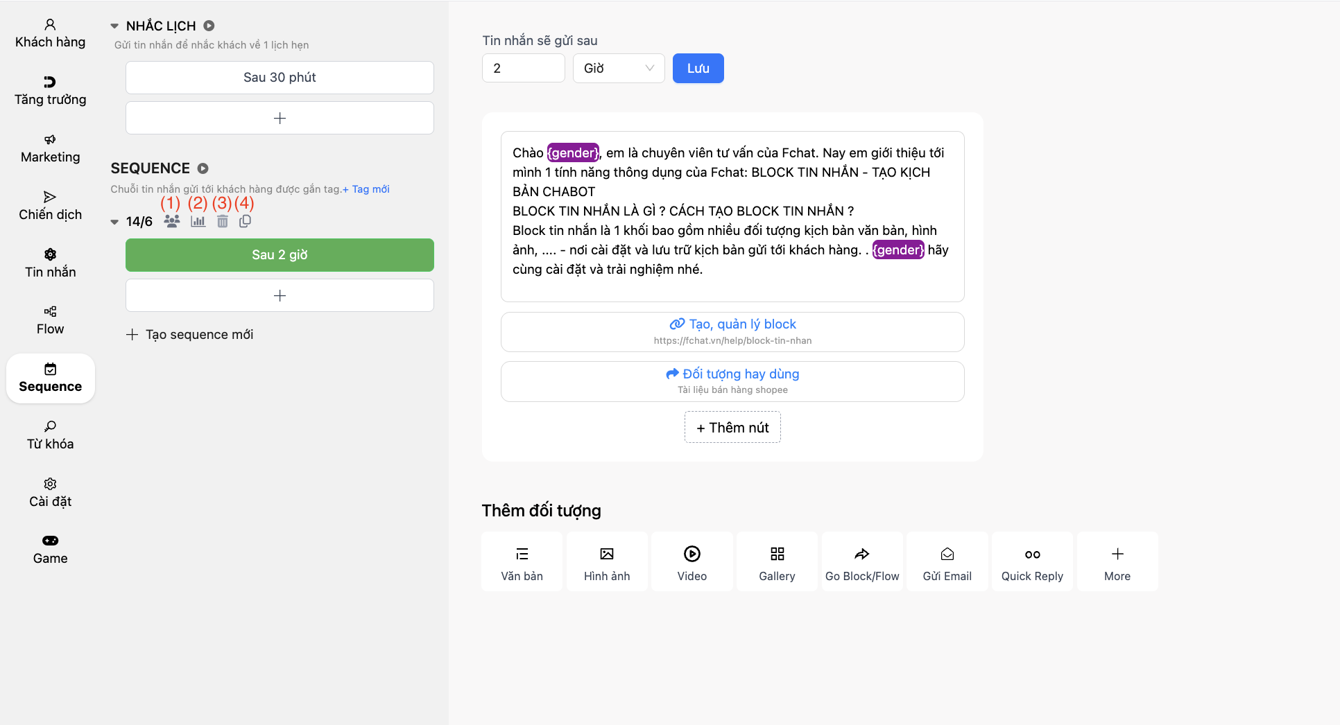 Sequence - Chuỗi tin nhắn CSKH tự động với Chatbot