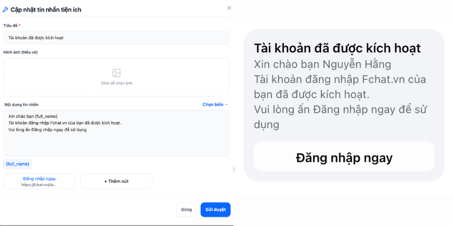 → Có thể sử dụng biến như:{full_name},{order_id}
