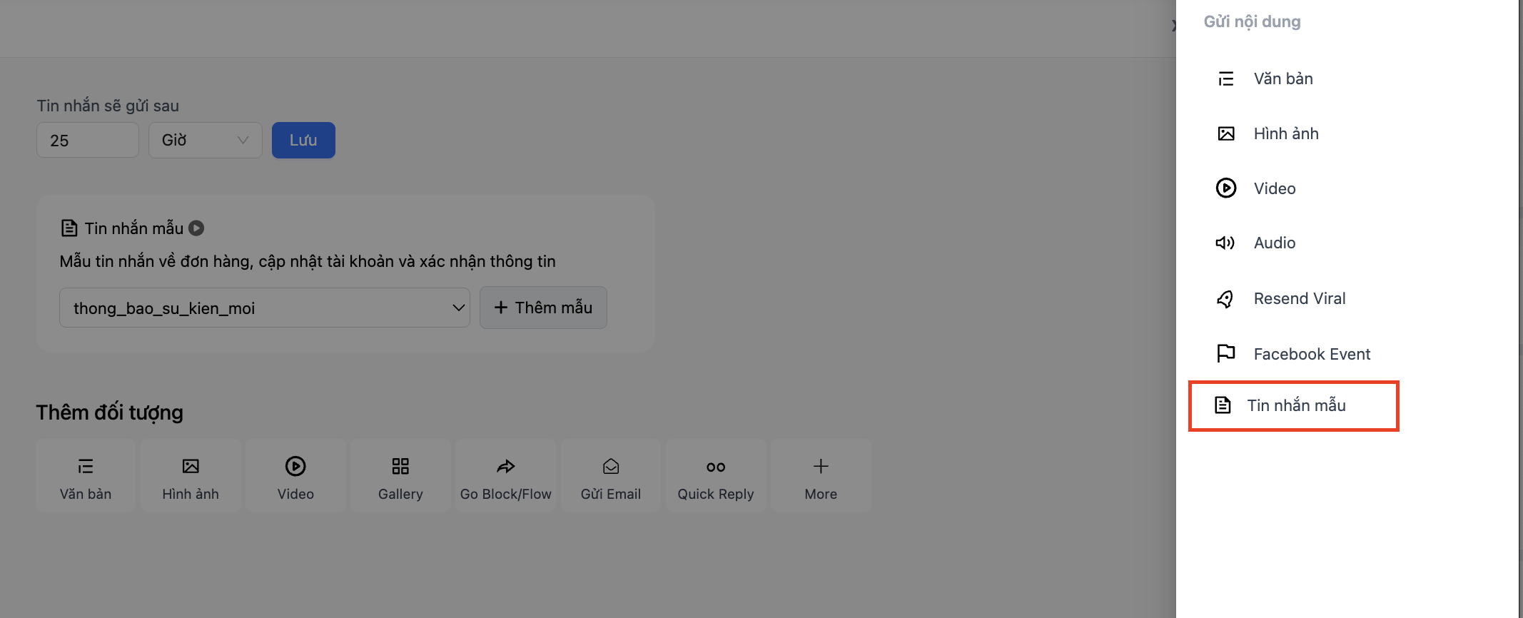 Tiếp theo, hãy chọn đối tượng Tin nhắn mẫu